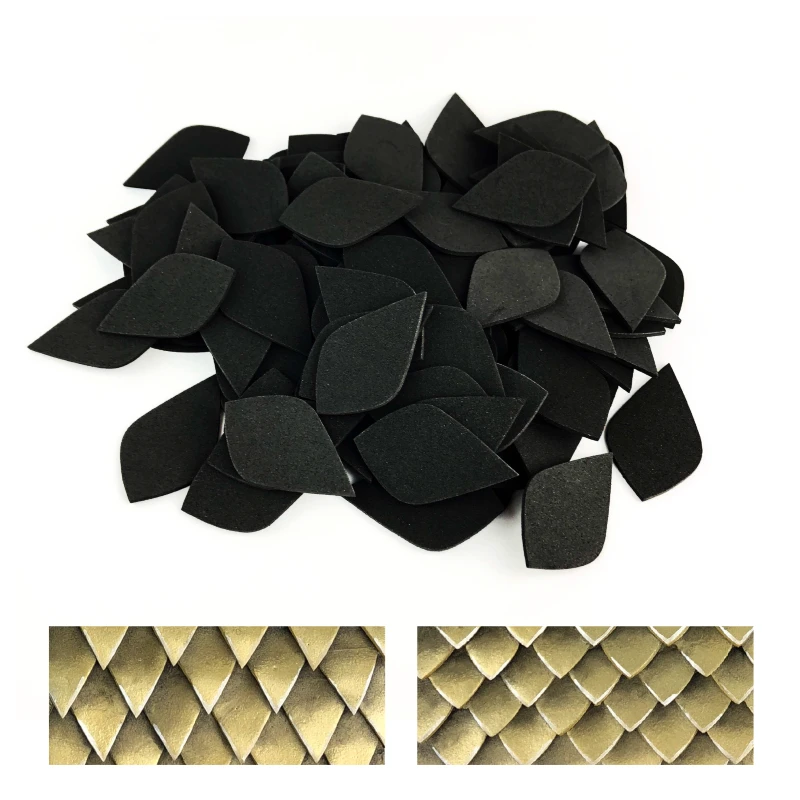 Pour tous nos dragons, sirènes, chasseurs de monstres et cosplayers à l’échelle, celui-ci est pour vous! Épargnez-vous des heures et des heures de coupe avec ces échelles prédécoupées, le cosplay prend suffisamment de temps! Chaque échelle est à double extrémité afin qu’elles puissent être posées dans les deux directions pour deux motifs complètement différents. Nos écailles en mousse sont fabriquées à partir de mousse EVA haute densité et peuvent être formées à chaud, collées, coupées, poncées et peintes comme tous nos autres produits en mousse EVA.