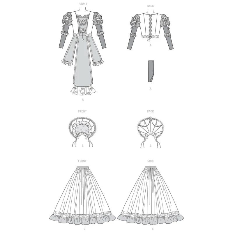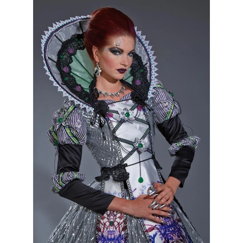 Patron de méchante reine composé de la collerette, d’un veston, d’une robe et de tabards