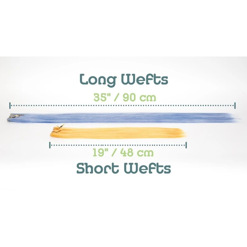 Want to add more thickness, volume, or length to your wig? Wefts are your answer! These wefts are nothing but an 8 foot (244 cm) long string of sewn fiber. The length of the hair is 19 » (48 cm).
