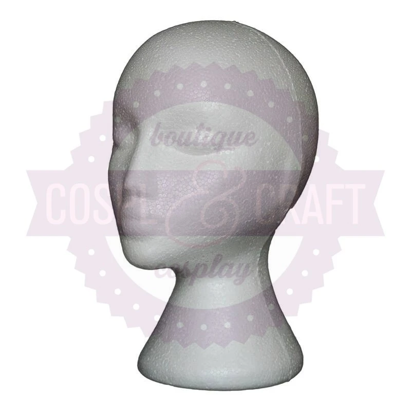 Tête en polystirène pour support de perruque.